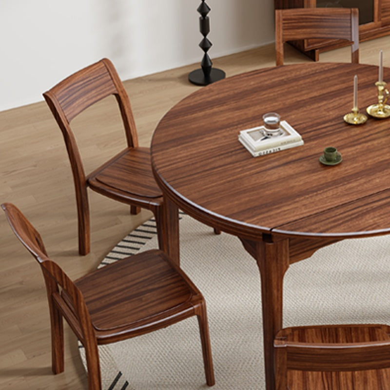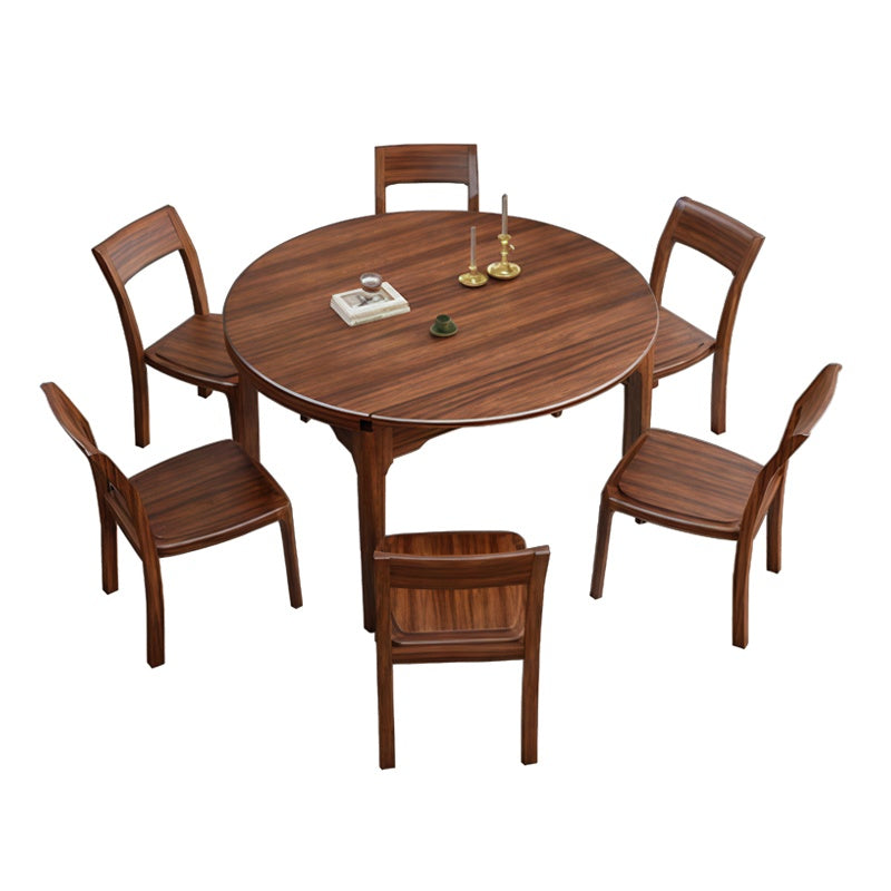Using imported walnut wood, the extendable platform dining table can be transformed into a round shape, suitable for various floor plans. It is made with water-based paint technology, which is environmentally friendly and healthy. It comes with a complete set of furniture for the entire house.